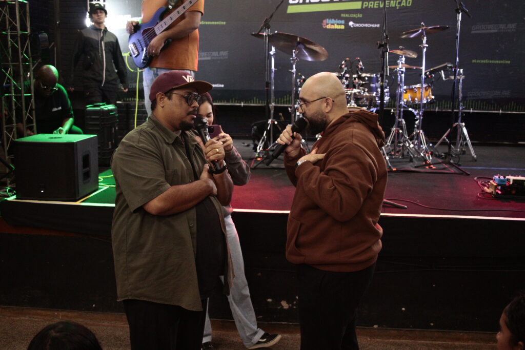 Durante as apresentações, o Youtuber e baterista, Lucas Gonçalves e Dhemis Messias interagem com a galera. Eles chamaram pessoas da plateia para participarem das atividades.