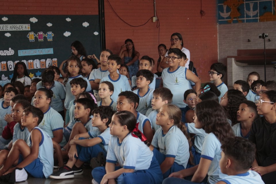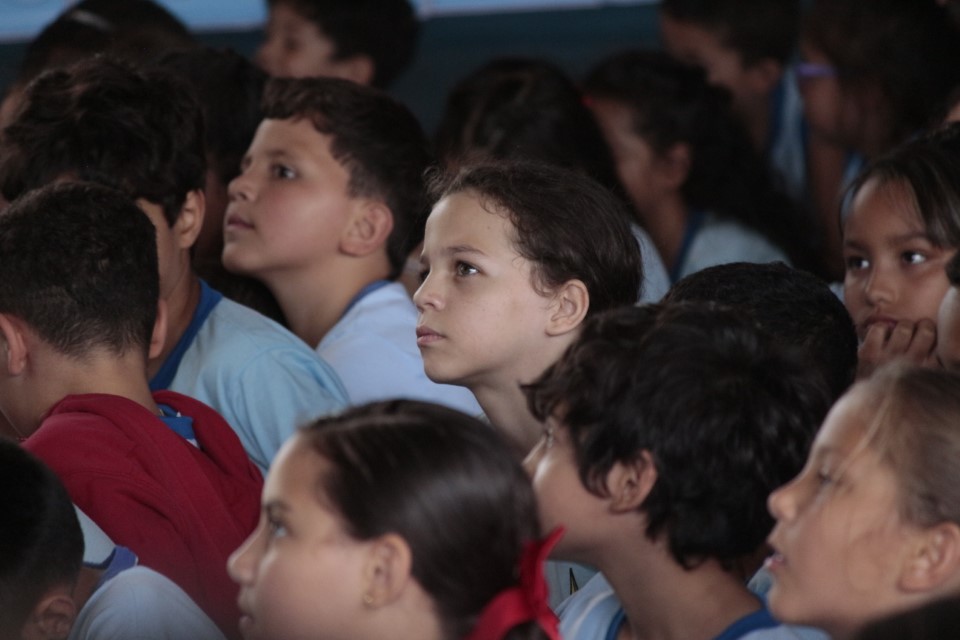 Na Escola Classe 16 de Ceilândia, a cantora e psicopedagoga, Elys, foi ao palco conversar com os presentes.